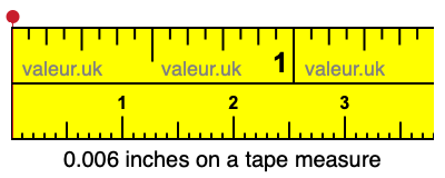To show you 0.006 inches on our tape measure, we first stretched out our tape measure and then marked 0.006 inches with a red line and a red dot. Here is 0.006 inches on a tape measure: