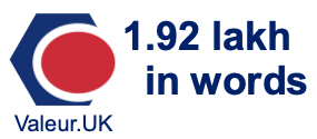 Not only is the word form of 1.92 lakh used in writing, but it also tells you how you would say 1.92 lakh. We will start by showing you how to write 1.92 lakh in its numeric form: